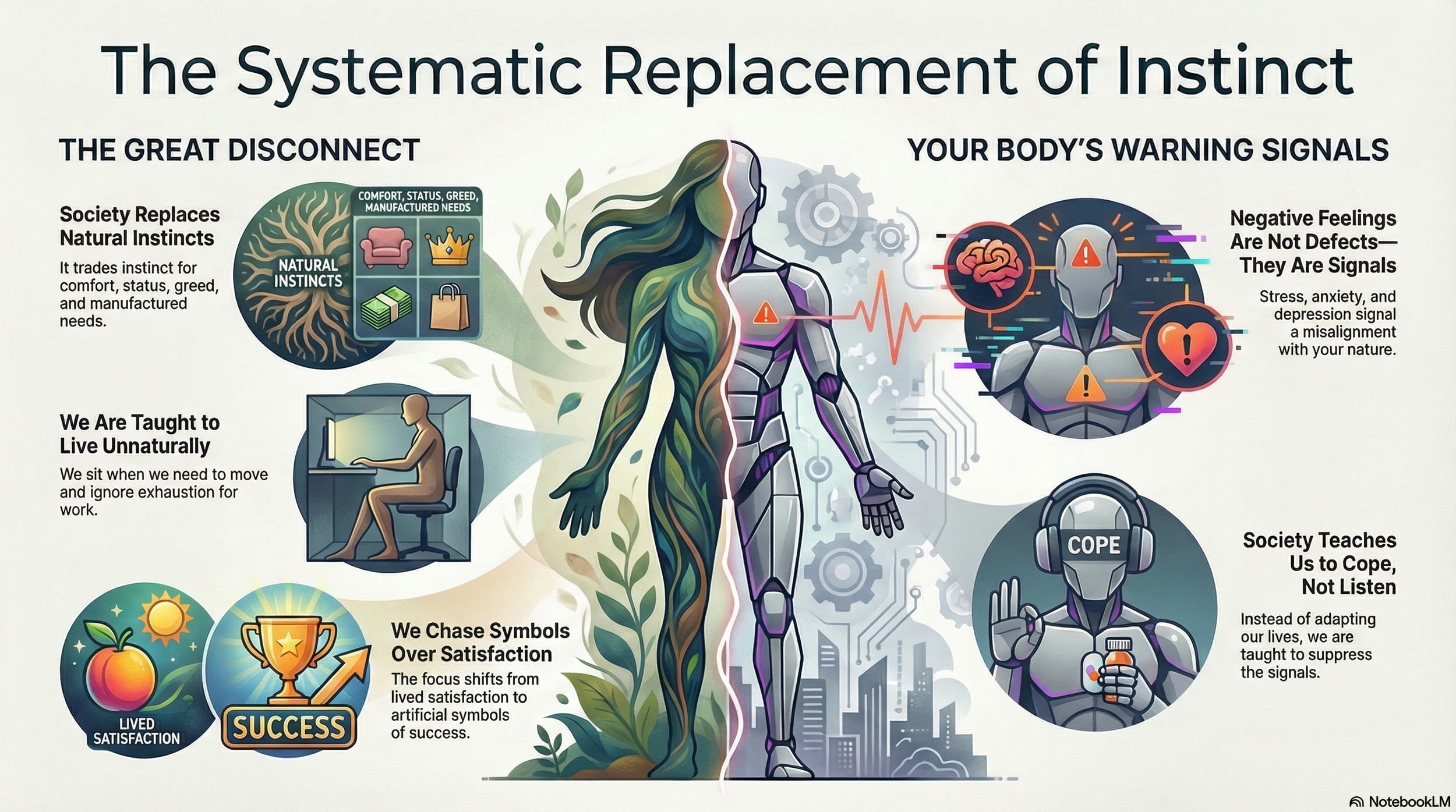 It strips us of natural instincts, natural behaviors, natural rhythms, and natural feedback loops.