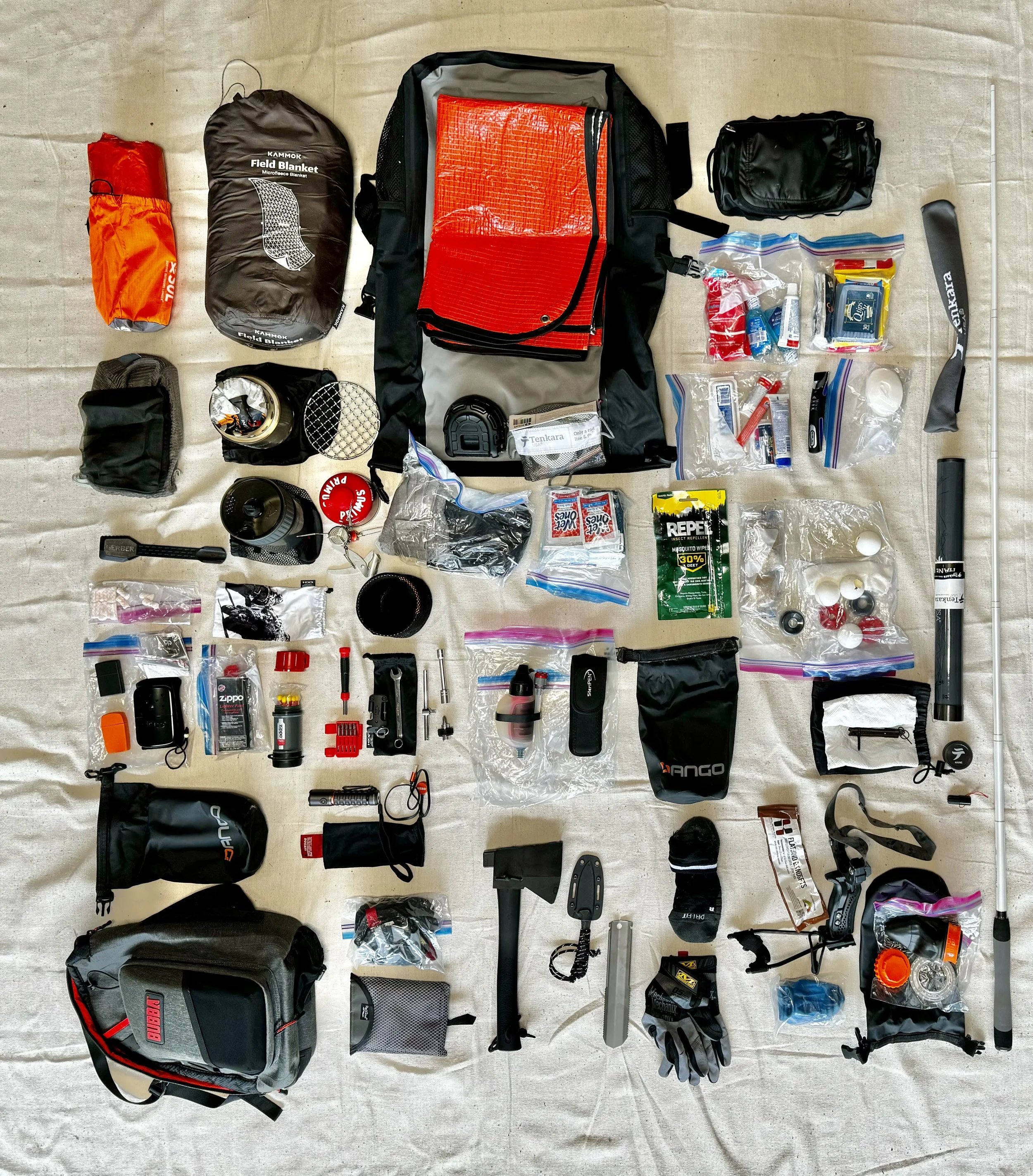 This is my survival pack — the gear that lives in my Gecko backpack and comes with me when “just in case” isn’t good enough.